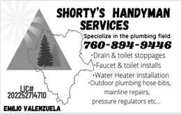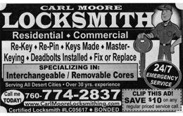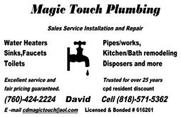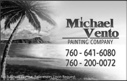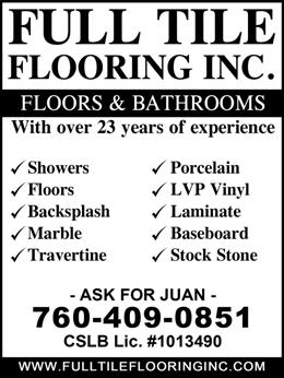 please support our advertisers To advertise in News & Views, please call (760) 200-2241 or (760) 200-2210 for current rates and information. Automotive / Golf Carts Cash For Cars . . . . . . . . . . . . . . . . . . . . . . . . .85 Fix Auto, Body Shop . . . . . . . . . . . . . . . . . . .78 Indio Collision . . . . . . . . . . . . . . . . . . . . . . . .92 Marc Lucas Golf Cart Services . . . . . . . . . . .88 Wayne’s Golf Cart Services . . . . . . . . . . . . . .90 Charities Galilee Center . . . . . . . . . . . . . . . . . . . . . . . . .73 Cleaning Services Molly Maid . . . . . . . . . . . . . . . . . . . . . . . . . . .76 TATU Cleaning Service . . . . . . . . . . . . . . . . .93 This and That Pressure Washing . . . . . . . . .91 Computer / Technology Blancas Computer Solutions . . . . . . . . . . . . .90 Bridgit . . . . . . . . . . . . . . . . . . . . . . . . . . . . . . .78 Ohkio Smart Control Solutions . . . . . . . . . .79 Entertainment / Restaurants Desert Theatre Works . . . . . . . . . . . . . . . . . .83 Financial / Legal David Sarazen, Attorney . . . . . . . . . . . . . . . .85 David’s Tax Services . . . . . . . . . . . . . . . . . . . .94 Emma Khatchaturian, Notary Public . . . . . .91 Franklin R. Nathan (Income Tax) . . . . . . . .85 Howard M. Speyer, Attorney . . . . . . . . . . . . .81 Legal Docs by Sundance . . . . . . . . . . . . . . . .85 Marsha R. Nall, CPA . . . . . . . . . . . . . . . . . . .91 MoneyLetter.com . . . . . . . . . . . . . . . . . . . . . .80 Paul Golubovs, Appraiser . . . . . . . . . . . . . . .85 Steven Bayard, Notary Public . . . . . . . . . . . .87 Hair / Beauty Hair at Home . . . . . . . . . . . . . . . . . . . . . . . . .90 Julia Rocks Esthetics . . . . . . . . . . . . . . . . . . .87 Health / Medical / Dental Massage by Kristen . . . . . . . . . . . . . . . . . . . . .89 Old Dusty Spex . . . . . . . . . . . . . . . . . . . . . . .89 Shadow Hills Dental Care . . . . . . . . . . . . . . .87 Skin Cancer Center, Dr. Keith Gross . . . . . . .2 Home Appliance / Electric / Plumbing B.E.S. A/C & Heating . . . . . . . . . . . . . . . . . . .94 Chris Nordin A/C & Heating . . . . . . . . . . . .94 Command One Security . . . . . . . . . . . . . . . .81 Desert Pro Electrical . . . . . . . . . . . . . . . . . . .90 Durango Plumbing . . . . . . . . . . . . . . . . . . . .93 DVS Plumbing . . . . . . . . . . . . . . . . . . . . . . . .91 Hydes A/C, Heating, Electrical . . . . . . . . . . .72 Leak Specialties . . . . . . . . . . . . . . . . . . . . . . . .83 Magic Touch Electric . . . . . . . . . . . . . . . . . . .92 Magic Touch Plumbing . . . . . . . . . . . . . . . . .88 Home Door / Glass / Window A Better View Window Cleaning . . . . . . . . .92 Affordable Sliding Door Repair . . . . . . . . . .73 Alclare Co. - Screening . . . . . . . . . . . . . . . . .94 California Window & Door . . . . . . . . . . . . .70 Carl Moore Locksmith . . . . . . . . . . . . . . . . .91 Classic Garage Door . . . . . . . . . . . . . . . . . . .84 Deluxe Window Cleaning . . . . . . . . . . . . . . .88 Door Pros . . . . . . . . . . . . . . . . . . . . . . . . . . . .95 Door Specialist - Mike Sassi . . . . . . . . . . . . .87 Empire Window Cleaning . . . . . . . . . . . . . . .87 Hung Right Garage Door . . . . . . . . . . . . . . .94 L&L Door and Window . . . . . . . . . . . . . . . . .68 Home Landscape / Patio / Pool A-One Concrete . . . . . . . . . . . . . . . . . . . . . . .92 Alumawood Patio Covers . . . . . . . . . . . . . . .89 Belle Vue Landscaping Pools & Spas . . . . . .87 E. Aguilar Gardening Service . . . . . . . . . . . .93 Greenscape Landscape, Angel Roman . . . . .87 Israel Diaz . . . . . . . . . . . . . . . . . . . . . . . . . . . .90 JB Landscape & Design . . . . . . . . . . . . . . . . .90 Robelo’s Gardening Service . . . . . . . . . . . . . .91 Stonecreek Pools . . . . . . . . . . . . . . . . . . . . . .75 SV Landscape . . . . . . . . . . . . . . . . . . . . . . . . .90 Yosi Israeli Irrigation . . . . . . . . . . . . . . . . . . .80 Home Paint / Remodel / Repair American Wrought Iron . . . . . . . . . . . . . . . .92 Anayas Home Services . . . . . . . . . . . . . . . . . .89 B.O.S.S. Construction . . . . . . . . . . . . . . . . . .91 Custom Tile Installation . . . . . . . . . . . . . . . .91 Edwards Tile Repair . . . . . . . . . . . . . . . . . . . .89 Eli’s Painting . . . . . . . . . . . . . . . . . . . . . . . . . .89 Elite Cabinetry . . . . . . . . . . . . . . . . . . . . . . . .88 Full Tile Flooring . . . . . . . . . . . . . . . . . . . . . .86 Jerry Home Improvement . . . . . . . . . . . . . . .88 Leah Langefeld Painting . . . . . . . . . . . . . . . .79 Michael Vento Painting Company . . . . . . . .89 MM’s Painting . . . . . . . . . . . . . . . . . . . . . . . .93 One Stop Home Care, Mona Zetterquist . . .93 Reliable Roofing . . . . . . . . . . . . . . . . . . . . . . .74 Roof Tile Specialty, Inc. . . . . . . . . . . . . . . . . .84 Roofing, Jerry Meza . . . . . . . . . . . . . . . . . . . .92 Shorty’s Handyman Services . . . . . . . . . . . . .92 Sun City Interior Painting . . . . . . . . . . . . . . .89 Vazquez Tile & Marble . . . . . . . . . . . . . . . . .86 Home Services / Interior Design Professional Home Watch, Ronnie Kirsh . . .88 Insurance Wright Health Insurance . . . . . . . . . . . . . . . .84 Misc. Markham Numismatic - Coin Appraiser . . .83 Markham Numismatic - Gold Buyer . . . . . .81 Moving & Storage Desert Moving Co - Wheaton . . . . . . . . . . . .72 Personal Assistants Kathleen Ackerman, Retired Nurse . . . . . . .85 Margarita’s TLC (Companion) . . . . . . . . . . .85 Pest Control CaliBugs Termire & Pest Control . . . . . . . . .85 Tactic Pest Control . . . . . . . . . . . . . . . . . . . . .90 Pets / Pet Care Scoopy Doo Pet Poo Removal . . . . . . . . . . . .88 Real Estate Billy D. Lewis Team, HK Lane . . . . . . . . . . . .80 Cathy Riley, Bennion Deville . . . . . . . . . . . .75 Cheryl Johnston, HomeSmart . . . . . . . . . . .87 Fr