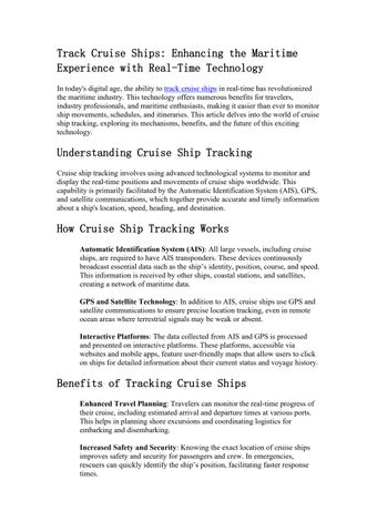 Track cruise ship in real-time with our advanced cruise ship tracking service. Stay updated on ship locations, routes, and schedules with accurate and up-to-date information. Perfect for travelers, maritime enthusiasts, and industry professionals. www.cruisetracker.com