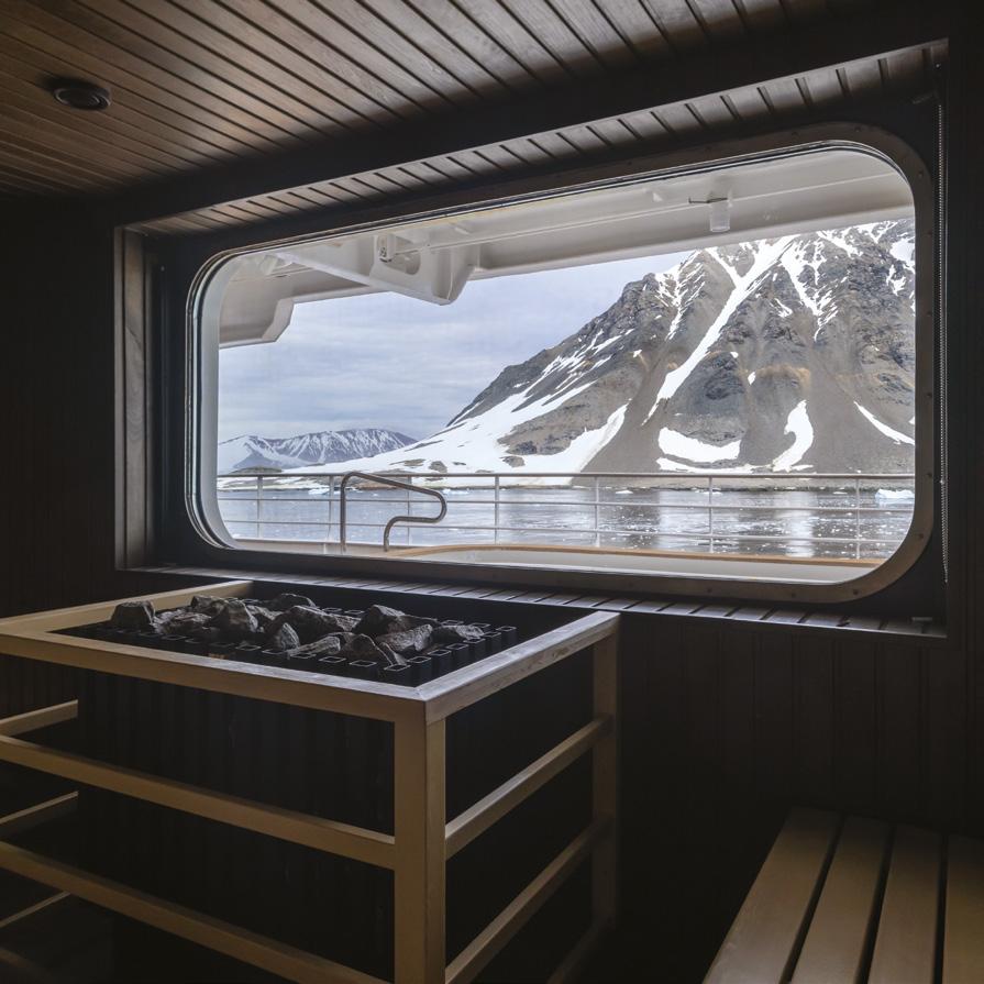 The afternoon offers the opportunity of an expert lecture on the area, followed by further expeditions or excursions. Or, of course, you could lounge out on the extensive decks, observing the astounding seascapes and wildlife. Or you could grab a towel, sit back and sweat it out, admiring every aspect from inside the panoramic sauna - before or after a soothing massage. Or you could visit the gym or the hairdresser or shop for essentials.