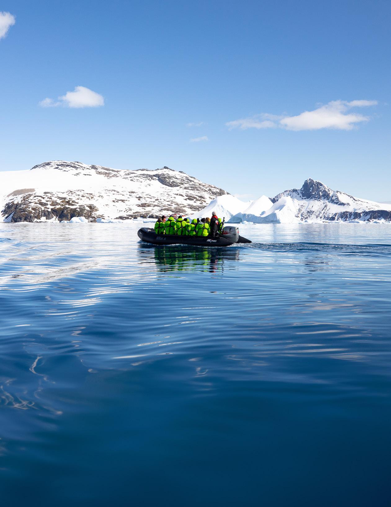 Atlas Ocean Voyages takes you closer to your environment as you embark on one of the custom-made Zodiacs made for World Voyager™ , World Traveller™ and World Navigator®. Cruising Antarctic coasts, your knowledgeable experts guide you through the continent’s many wonders. As your Zodiac driver navigates the waters, stop and listen to the natural sounds that surround you. At first, you might think it’s all silence, but if you focus, the cries of snow petrels echo in the distance. You may encounter marine wildlife while out on the water, so focus on the soft but distinct rush of water and watch for the bubbles just before a breach. This is an essential excursion that truly gives you a pure feeling of triumphant exploration.
