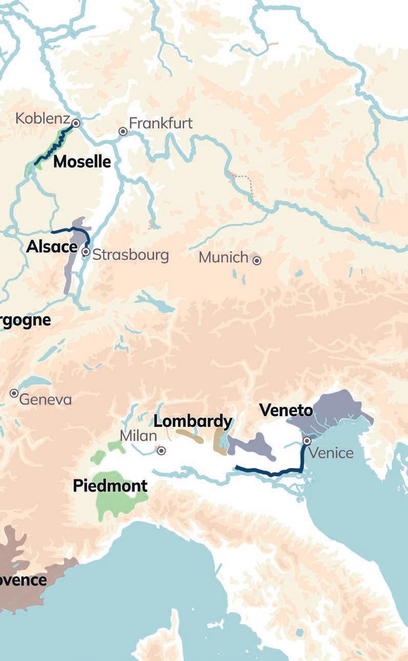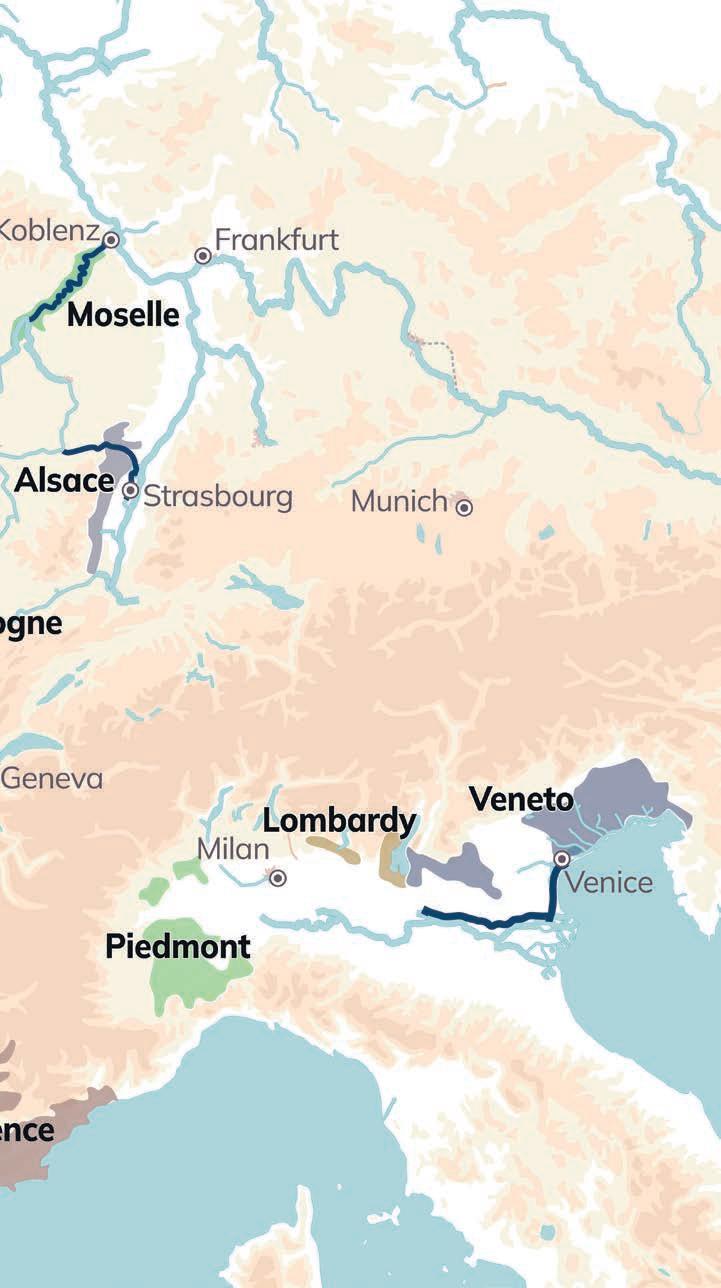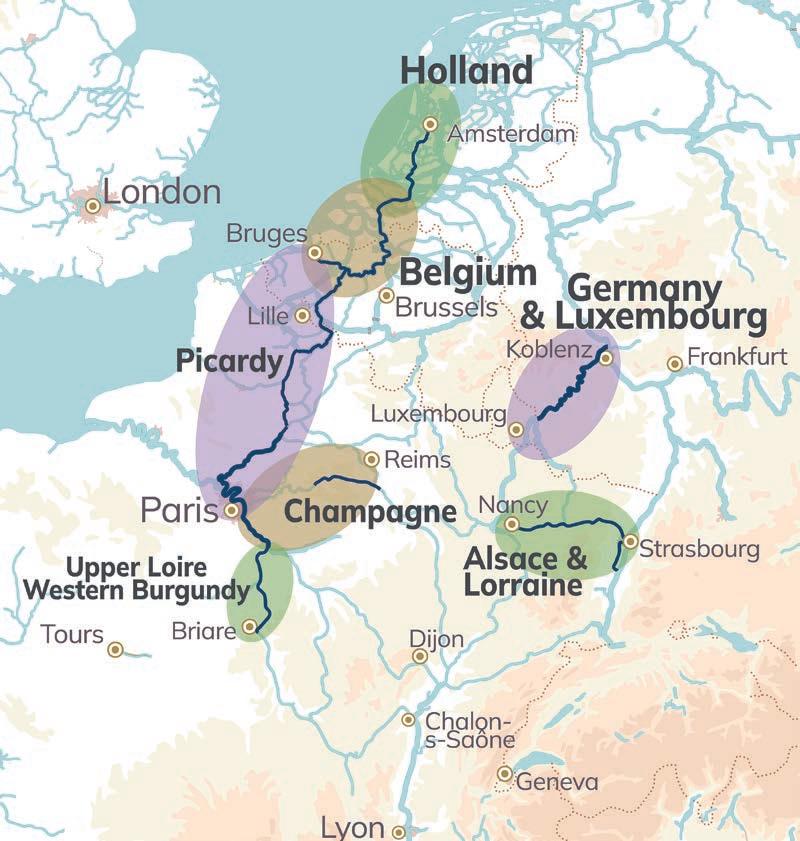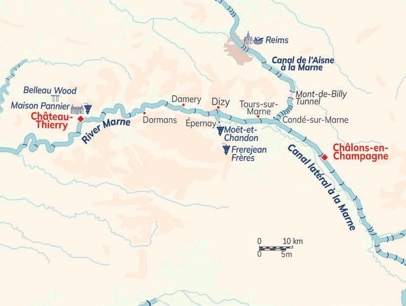 l Ideal for champagne lovers, cruise through the lush sloping vineyards and sample the bubbly delights of France’s most effervescent region