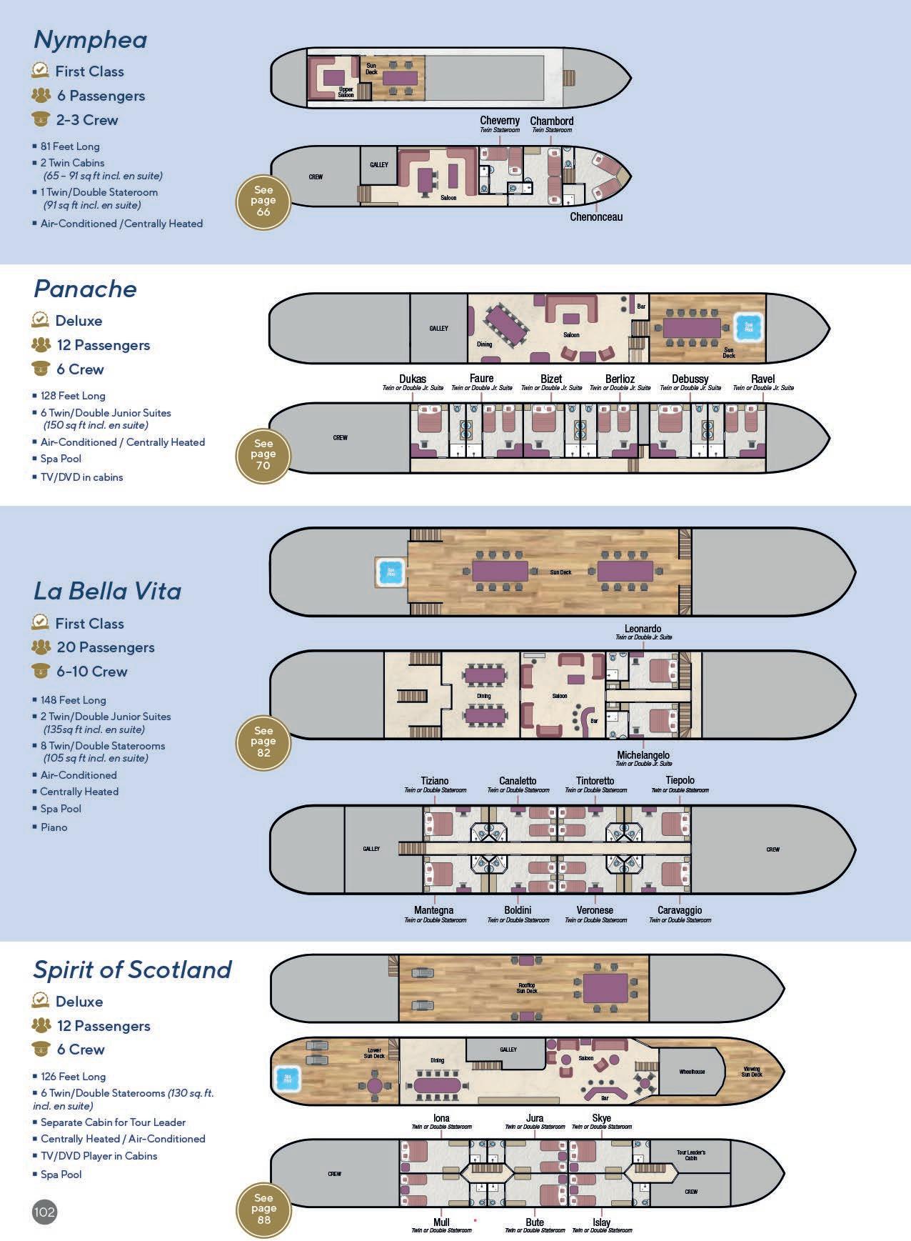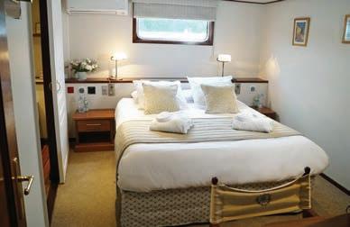In our fleet of 17 vessels, we have hotel barges accommodating between 6 and 20 passengers, with cabin sizes varying from ultra-deluxe suites comparable to top hotel rooms, to more cosy and compact staterooms.