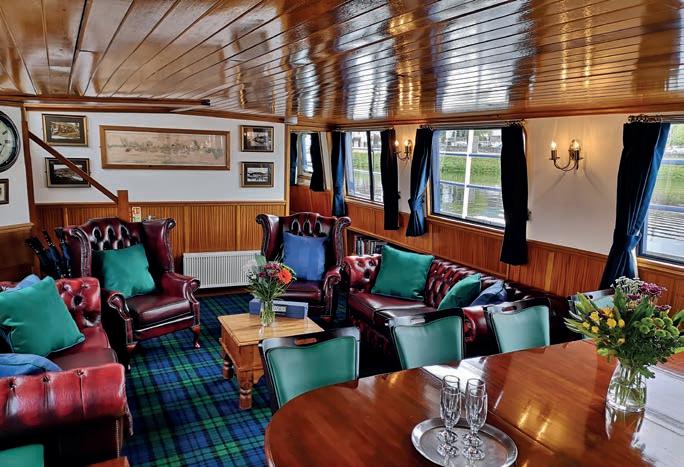 Although purpose-built less than twenty years ago as a hotel barge, 12-passenger Spirit of Scotland’s contemporary style evokes that of the traditional Steamers that plied the lochs of Scotland in the 19th and early 20th centuries as post and passenger boats.