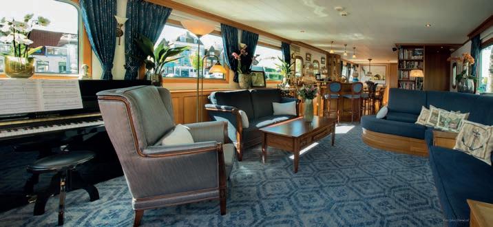 The spacious, air conditioned saloon with its attractive cocktail bar, piano and elegant furnishings provides a truly sophisticated setting, while each of the four generous 215 sq ft cabin suites is lavishly equipped and the en suite bathrooms feature double hand-basins and oversized showers.On deck there is a large sun deck with comfortable loungers and a hot tub. This cruise on the luxurious La Nouvelle Etoile is a journey back in time through a picturesque landscape along delightful canals, and through historic cities. She also cruises in Alsace & Lorraine (page 68), Champagne (page 72) and Holland (page 76).