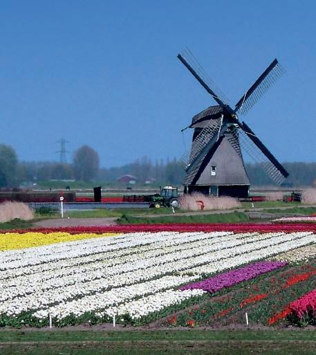 l The peaceful countryside comes alive with colours. Tulips are in bloom in Holland, and the snow-capped Pyrenees are visible from the Canal du Midi