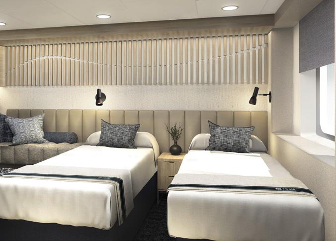 Your ship’s restaurants serve up high-quality, perfectly presented dishes that really do taste as good as they look. Gorge yourself on bountiful breakfasts at Aune, with madeto-order eggs and freshly baked bread, a generous lunch and a three to five-course dinner. From the open kitchen, Fredheim’s chefs create dynamic dishes, from interna tional favourites to local goodies. For fine dining, enjoy a rotating menu of exceptional modern dishes inspired by the regions we explore, at Lindstrøm. After a day’s adventure, there’s nowhere better to go for a nightcap than the Explorer Lounge and Bar.