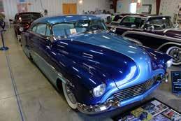 In a building were 3 iconic sleds, one of them was Larry Watsons original “Panel Job” painted ‘58 T-Bird “Vino Paisano”, a Barris built ‘52 Buick Riviera “Blue Danube” and a chopped candy maroon ‘50 Mercury with a Desoto grille. The “Blues Brothers” were driving around in their auction bought cop car, it needs the lighter fixed but it had the speaker on top. They were of course wearing sunglasses, even at night.