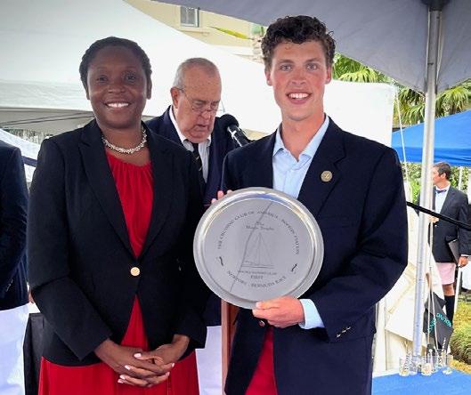 More than 100 awards were presented for top finishes in each of 19 classes, and for numerous other superlatives, such as overall fastest and slowest elapsed times, youth teams, family crews, and club and service-academy teams. Then, at the very end, came the race’s trademark sterlingsilver St. David’s and Gibbs Hill Lighthouse trophies, which are “keeper” awards for the winners. (See Prize List of all winners. https://bermudarace.com/wp-content/ uploads/2022/06/N2B-2022-Prizegiving-LIST_-FINAL.pdf)
