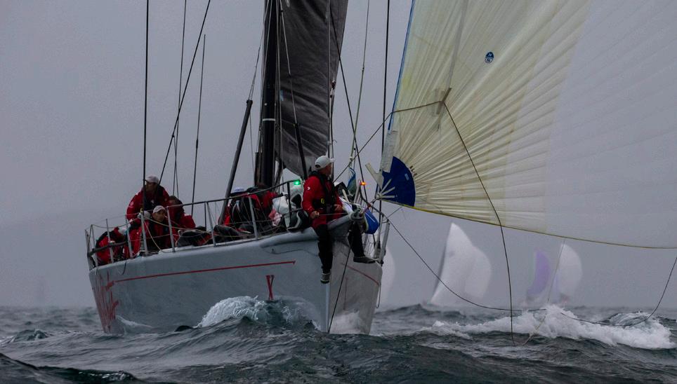 The inaugural Two-Handed Division proved a huge drawcard for media and spectators and the camaraderie displayed by all 17 teams provided an unforgettable experience for the competitors. Jules Hall and Jan Scholten didn’t put a foot wrong on Disko Trooper_Contender Sailcloth to take twohanded overall honours whilst Rob Gough and John Saul came home strongly on the Tasmanian entry, Sidewinder, for two-handed Line Honours victory.