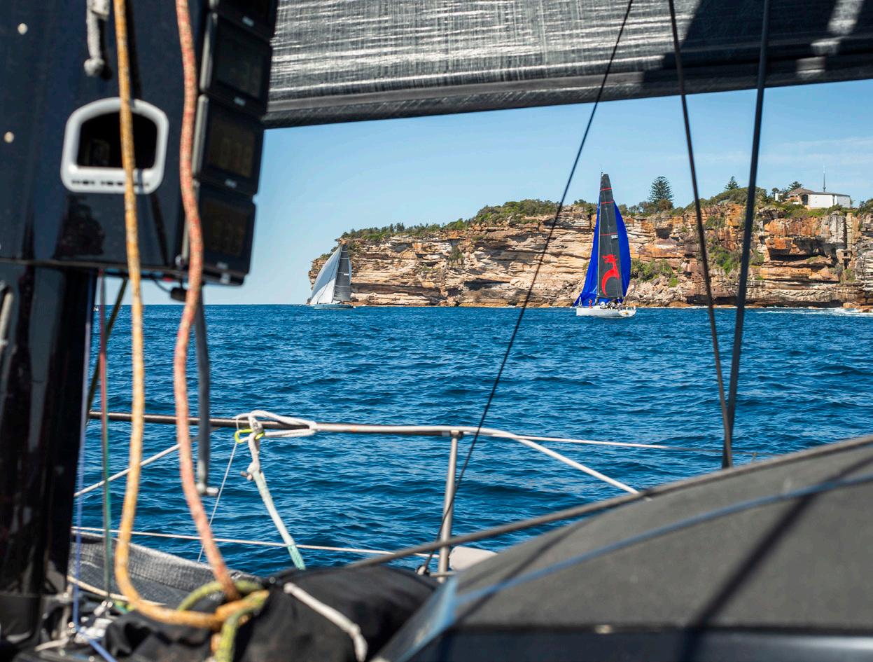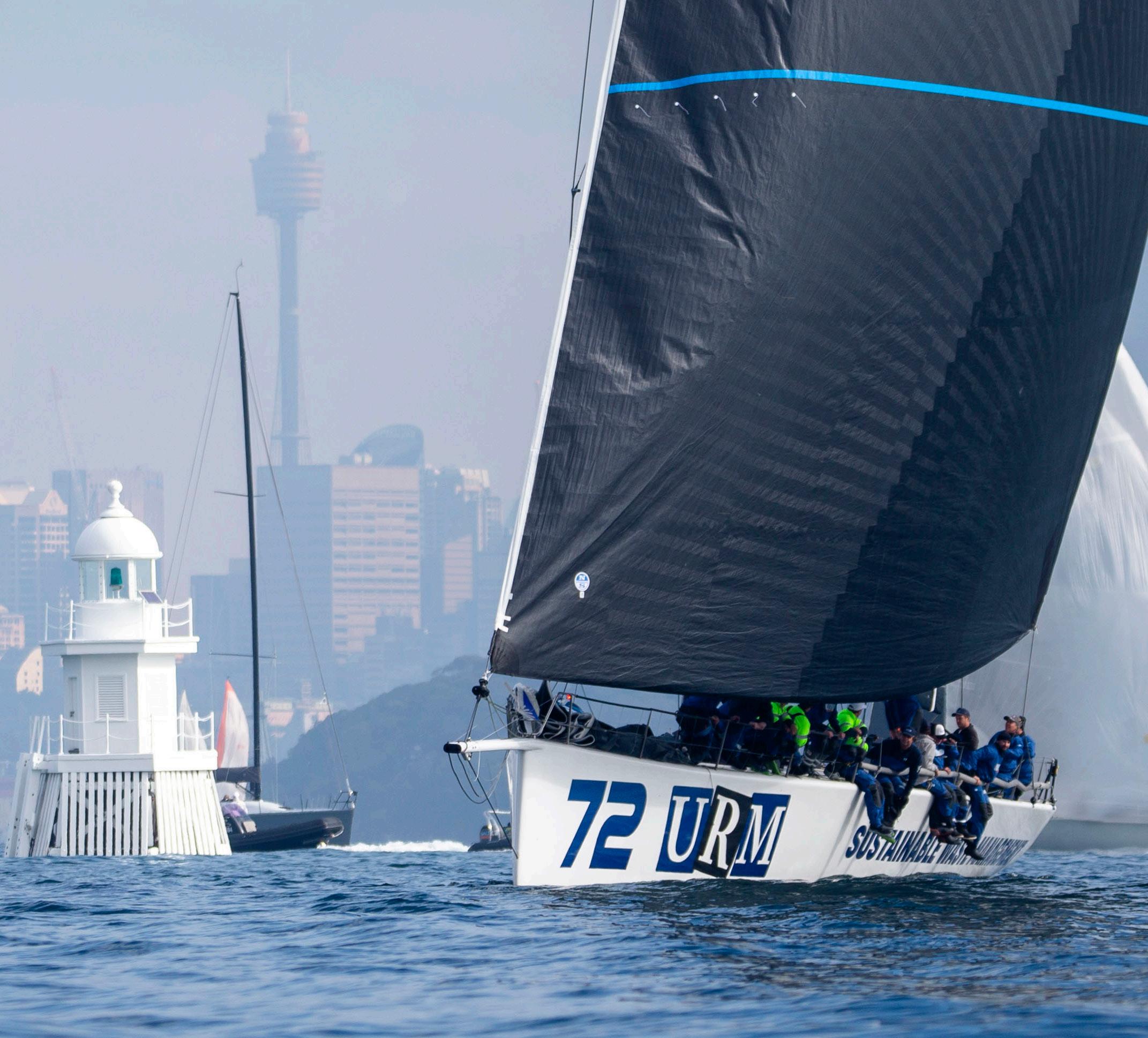 Once the boats cleared the Heads and the breeze settled, the larger yachts began to assert their dominance, enjoying ideal conditions for the long run down to Flinders Islet. Anthony Johnston’s URM Group was the first to round the islet, followed closely by Whisper, Smuggler, and KOA, all taking full advantage of the steady downwind conditions as they made their way back to Sydney