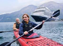 Er is een pasklare oplossing: vanuit Amsterdam of Rotterdam vertrekken met een prachtig cruiseschip. Voordeel: je hoeft geen vliegtuigtickets te kopen. Je scheept in aan boord van een schip met alle faciliteiten: van diverse restaurants, bars en zwembaden tot wellness en entertainment. Het schip is als een drijvend hotel. Het grote verschil is dat je kamer met je meereist, en dat is echt magisch. Die koffer moet je slechts één keer uitpakken. Terwijl je dineert, danst of slaapt, brengt de kapitein het schip naar de volgende bestemming. De ene dag ligt het ‘hotel’ in Ålesund, de dag erna in Trondheim, enz.