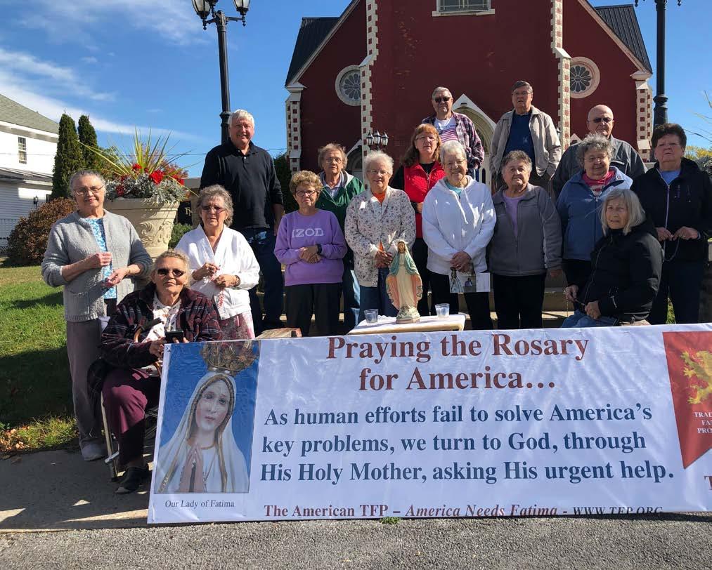 On Saturday, October 16, 2021, at noon local time, tens of thousands of Catholics just like you will be gathering with friends to pray the rosary for America. On street corners, church steps and in public parks everywhere, children of Our Lady will respond to their Mother’s call to: