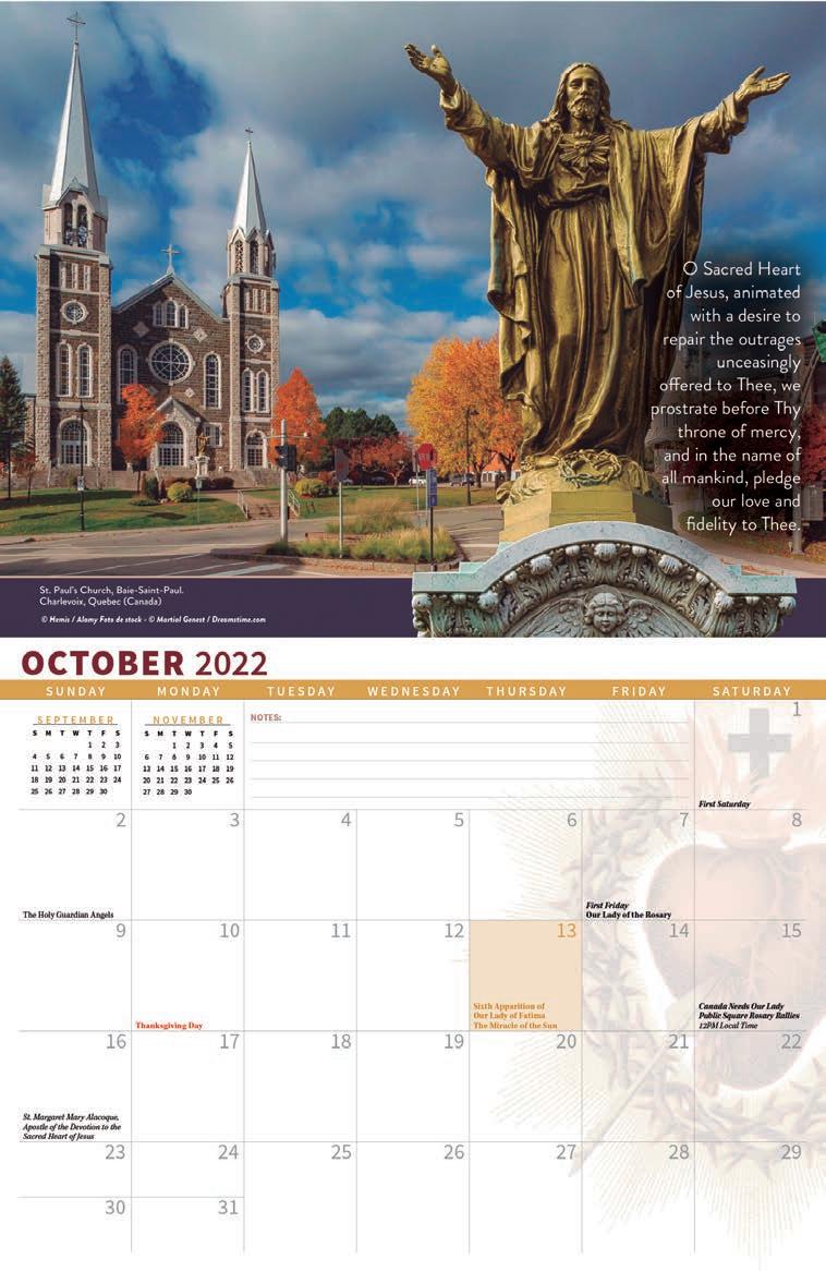 Each month for eighteen months, the moving depictions of the Heart of Jesus, as well as stunning photographs of sacred places dedicated to the Sacred Heart, will captivate the viewer. As plans and appointments are written upon the calendar from July 2021 through December 2022, each family member will be reminded that Our Lord is truly at the heart of his home.