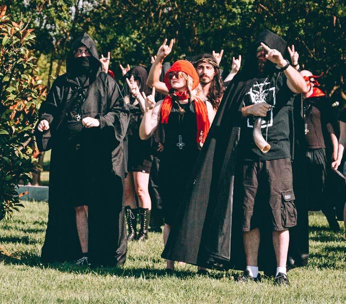Following the logic of that ruling, The Satanic Temple decided to claim the cross in the name of all Satanist veterans in a public satanic ritual on July 9, 2021. There were approximately seventy of them dressed in black, many in black robes and some with horned headwear. In unison, they chanted incantations, raised their satanic salute toward the cross and bowed down in adoration of the devil. It may have been the largest public act of Satanism in history.2 They certainly take pride in this event on their web site, claiming that it may have made the Bladensburg cross the second most important place of pilgrimage for Satanists worldwide.