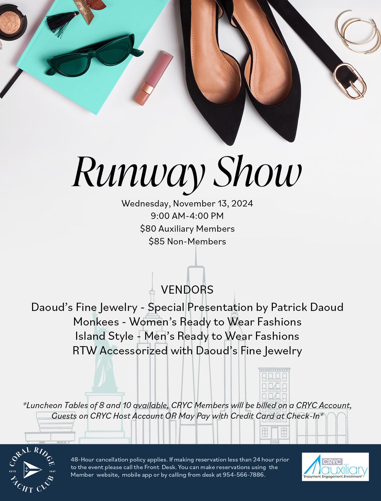 *Luncheon Tables of 8 and 10 available, CRYC Members will be billed on a CRYC Account, Guests on CRYC Host Account OR May Pay with Credit Card at Check-In*