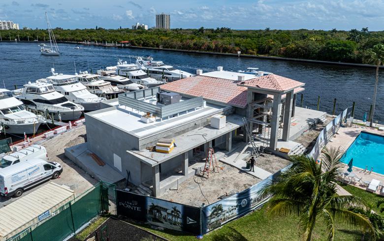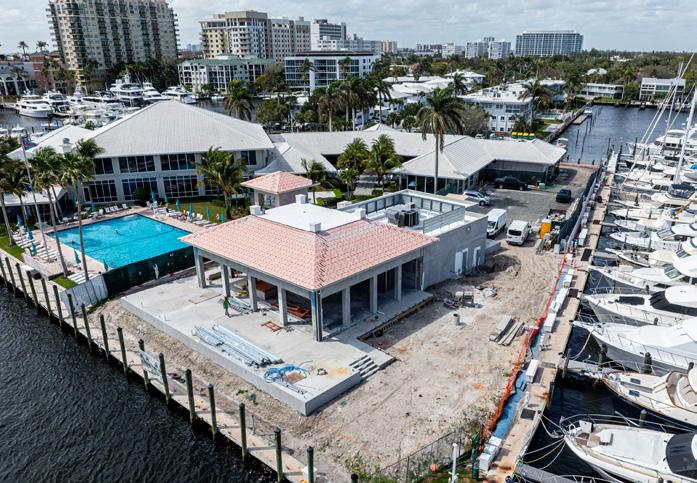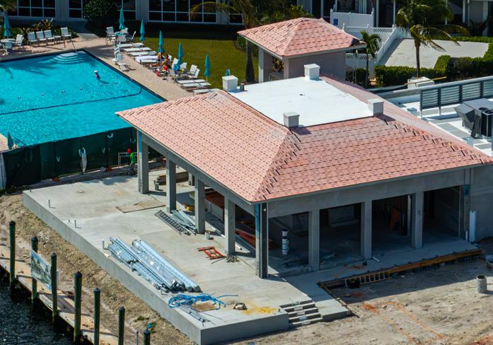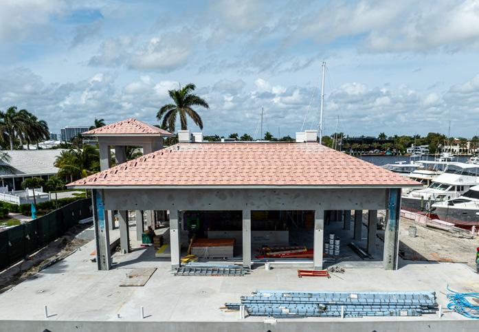 Interior work is well underway for The Pointe. The kitchen mechanical, plumbing and fire protection is installed and ready for inspection. The kitchen hood will be installed the week of March11. Electrical work is underway and will be completed soon. Substrate board is being installed in the dining area. Exterior stucco work is 90% complete as of March 8. Painting of the building has begun. Metal roofing on the sloped roofs will be installed very soon. Site paver work for the dock walkway along the east seawall is expected to begin on March 13 commencing at the south end.