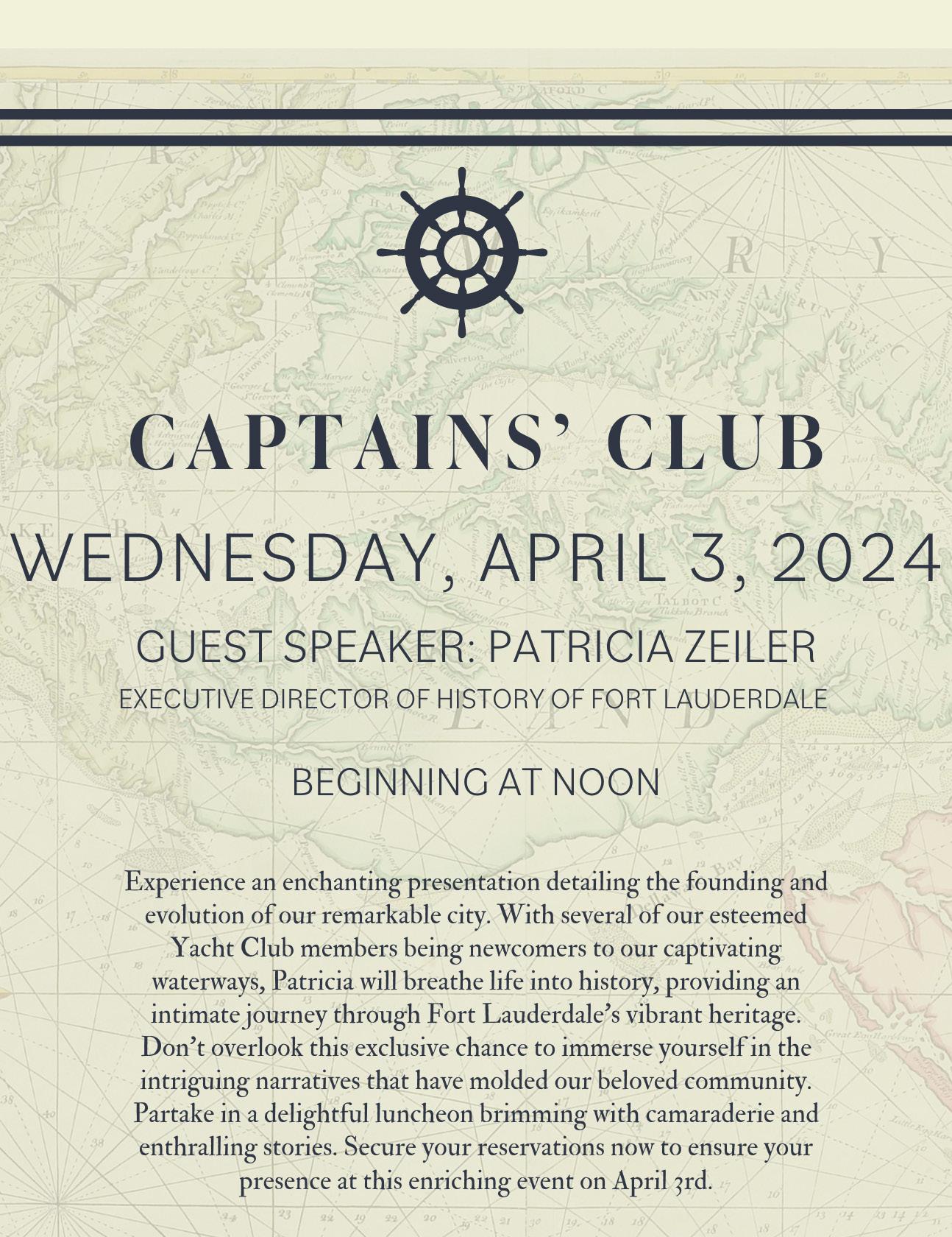 Our Club boasts a diverse membership, with a wealth of boating experience and insight. From seasoned sailors to novices, everyone brings something unique to the table, enriching our discussions and deepening our connections. Whether you’re a longtime member or new to the crew, your presence adds immeasurable value to our community. So mark your calendars and join us every Wednesday at noon for another opportunity to celebrate the bonds that make the Captains’ Club truly special.