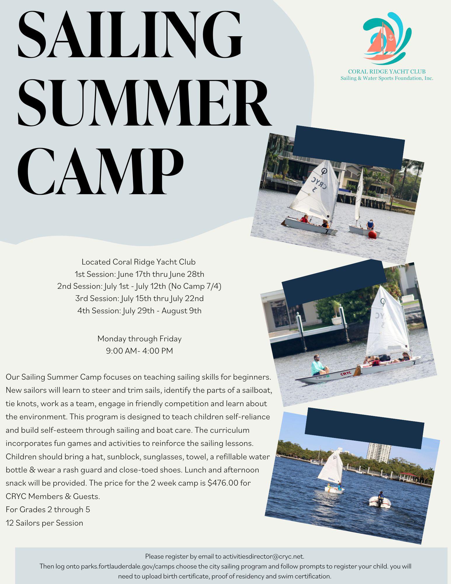 We are in the process of finalizing logistics for the Summer Sailing Camp, which benefits our members and the community as a whole. Last year we had about 40 participants in the program with about half of them receiving scholarships. Our partnership with the City of Ft. Lauderdale and LYC’s Foundation was very successful, and we will continue our partnership with them this year.