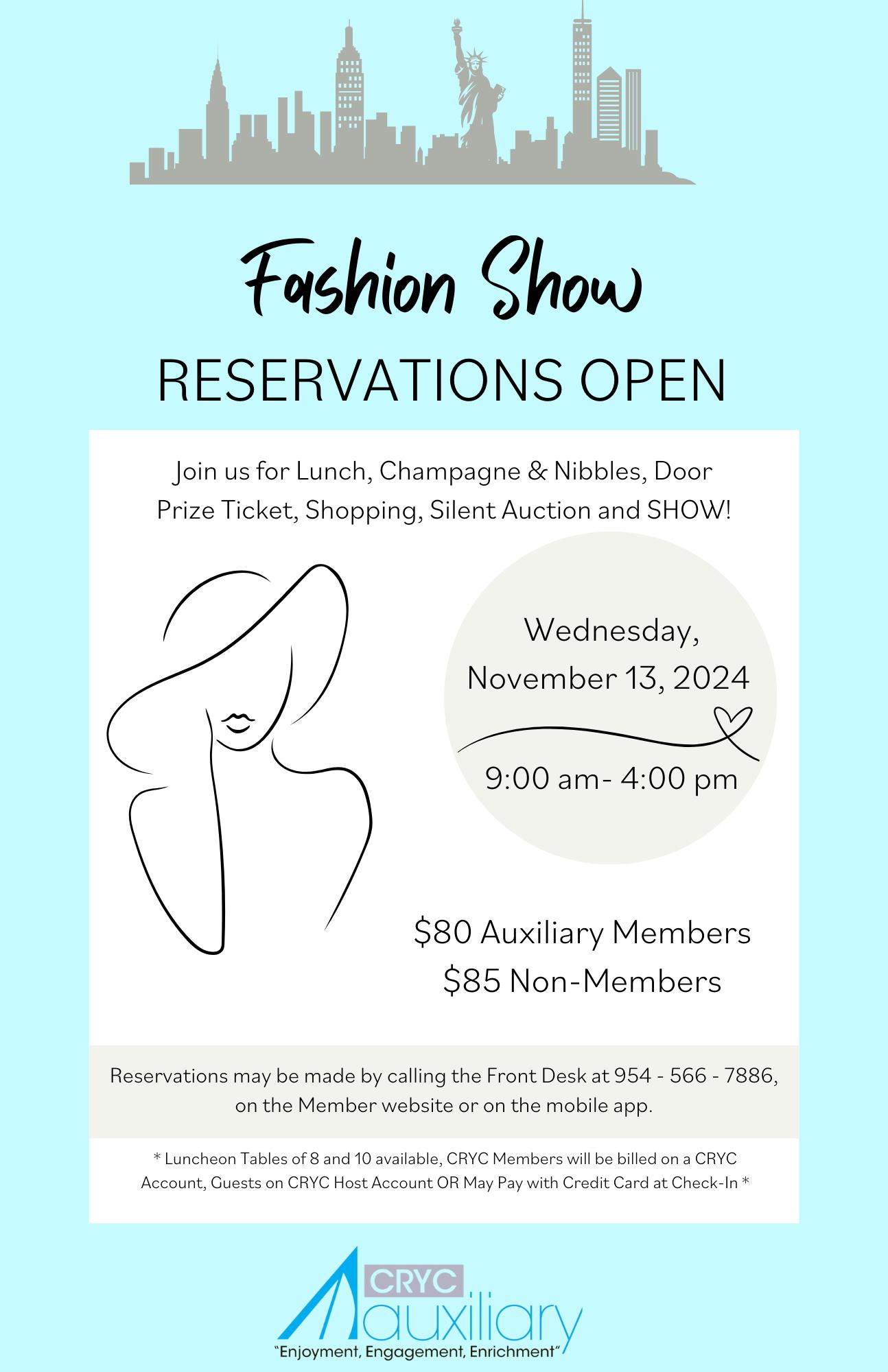 Please take out your calendar to mark our major fall events. At our September 18th Luncheon we will feature Michael Cavo, a Dillard’s Cosmetics Brand Leader, making a return visit to CRYC to offer his Tips and Tricks regarding make-up application. We all want to look our beautiful best. Call in your reservation; the date is coming up quickly.