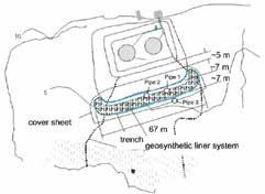 Instrumentation of the liner system was installed along the barrier to moni tor the ground temperatures and sam ples were taken to monitor the hydro carbon levels. The ground temperature profiles and the sampling for petroleum hydrocarbon (TPH) values provided evi dence that the geocomposite liner was performing as designed to stop the hy drocarbon migration. Further evidence on the successful performance of the system was collected through a program of laboratory studies combined with pe riodic retrieval and examination of sam ples of the liner materials from the field. Lab tests on the GCL sampled from the site concluded that the freeze-thaw cy cles experience at the site did not reduce the hydraulic conductivity of the GCL.