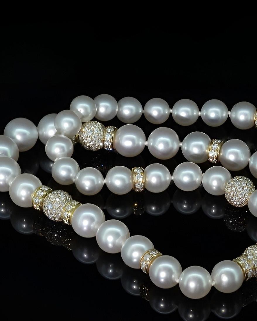 18k Yellow Gold, South Sea Pearls 9mm – 12mm Graduated and Diamonds