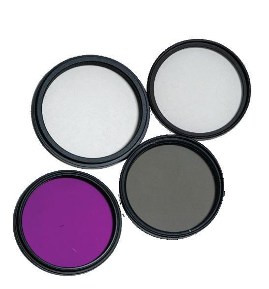 Lens filters block specific colors or types of light from coming into the camera. Lense filters also protect your lens from dust, dirt, scratches, etc. The most common filters are UV light, polarizing, skylight, close-up, and neutral dense filters.