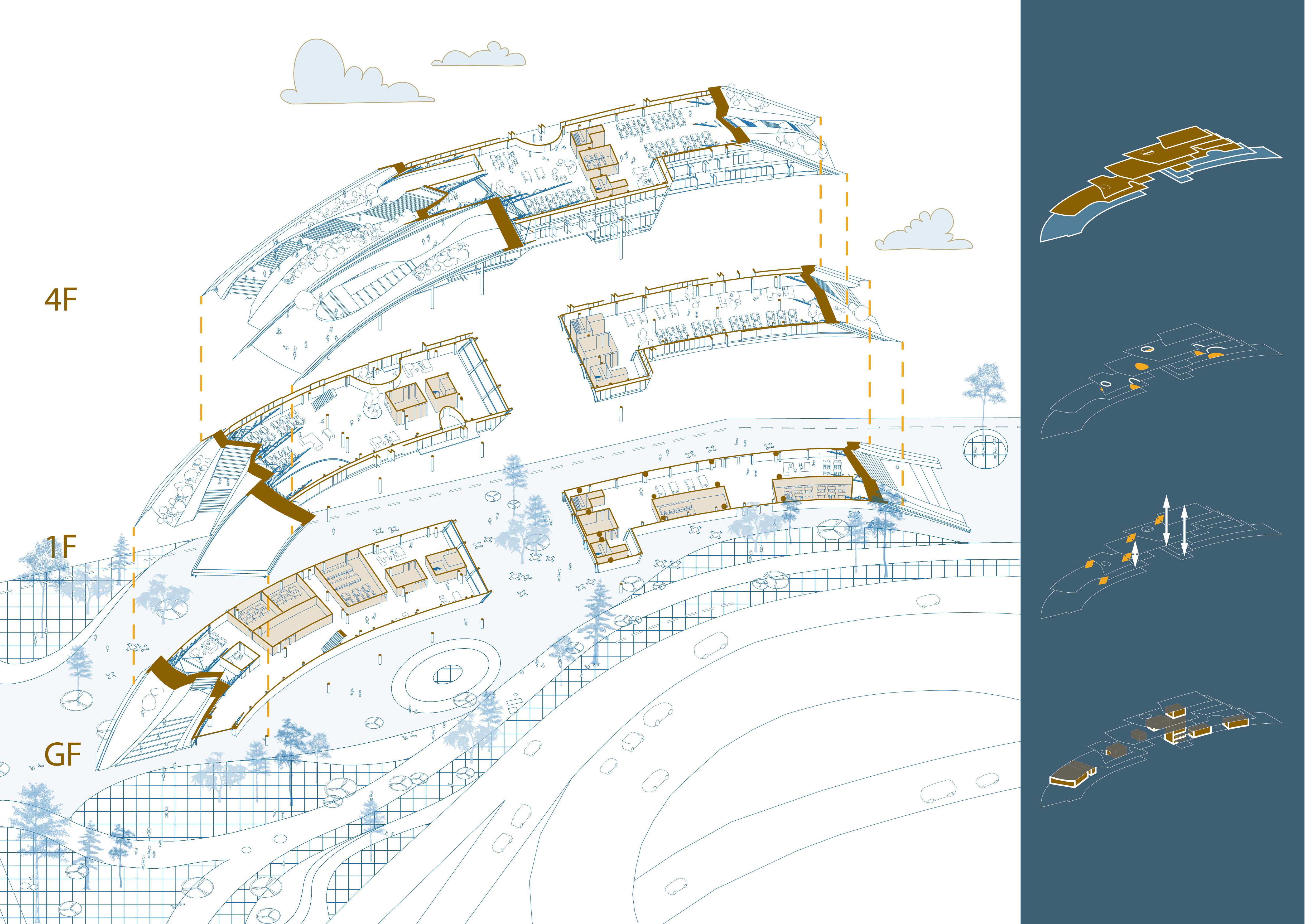 - Softwares used: AutoCAD, Sketchup, Rhinoceros, Enscape, Photoshop, InDesign, Illustrator