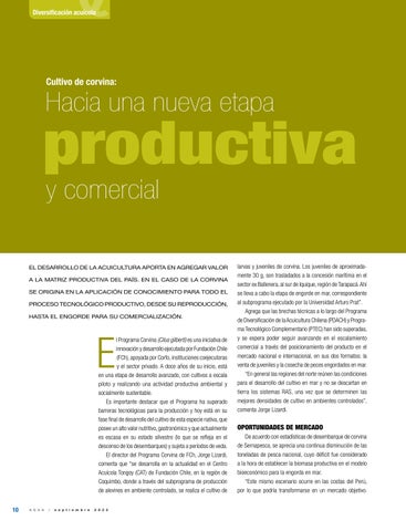 grandes alternativas para Chile Una de las Diversificación acuícola edición año 33 www.elec tricidad.cl 263 Entrevistas a José Miguel Benavente, vicepresidente de Corfo Cristián Sepúlveda, Programa de Acuicultura Áreas de Manejo UCN