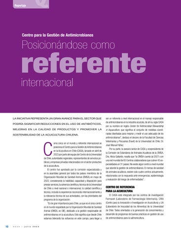 Como único en el mundo y referente internacional se posiciona el Centro para la Gestión de Antimicrobianos en la Acuicultura en Chile (CASA), lanzado en abril de 2023 por parte del equipo del Centro de la Universidad de Chile, autoridades regionales, representantes de servicios públicos y empresas privadas relacionadas con el sector productivo de la acuicultura.