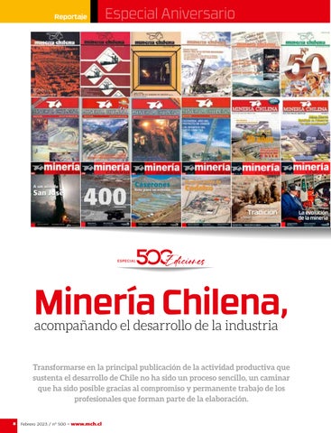 Esta edición en particular tiene una relevancia muy especial para todos quienes formamos parte de MINERÍA CHILENA, debido a que se trata de la publicación número 500.