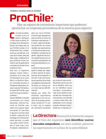 de que MINERÍA CHILENA es parte de esta nueva casa editorial, mostrando su capacidad de adaptarse y ser parte de los diversos procesos de transformación que vive el sector minero, tanto en Chile como en el mundo, persiguiendo dar visibilidad a los retos y oportunidades que presenta la principal industria de Chile, y a modo de ejemplo, cómo ha sido el progreso del incremento de la participación femenina en el sector.