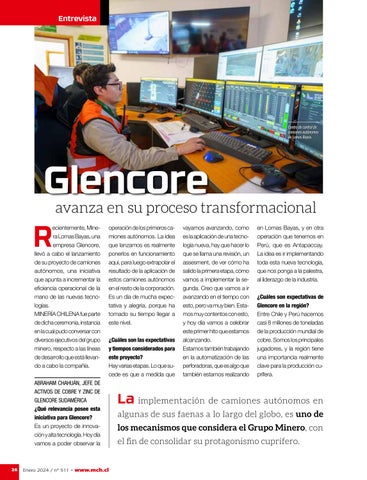ABRAHAM CHAHUÁN, JEFE DE ACTIVOS DE COBRE Y ZINC DE GLENCORE SUDAMÉRICA ¿Qué relevancia posee esta iniciativa para Glencore? Es un proyecto de innovación y alta tecnología. Hoy día vamos a poder observar la