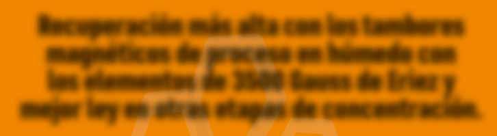 Recuperación más alta con los tambores magnéticos de proceso en húmedo con los elementos de 3500 Gauss de Eriez y mejor ley en otras etapas de concentración.