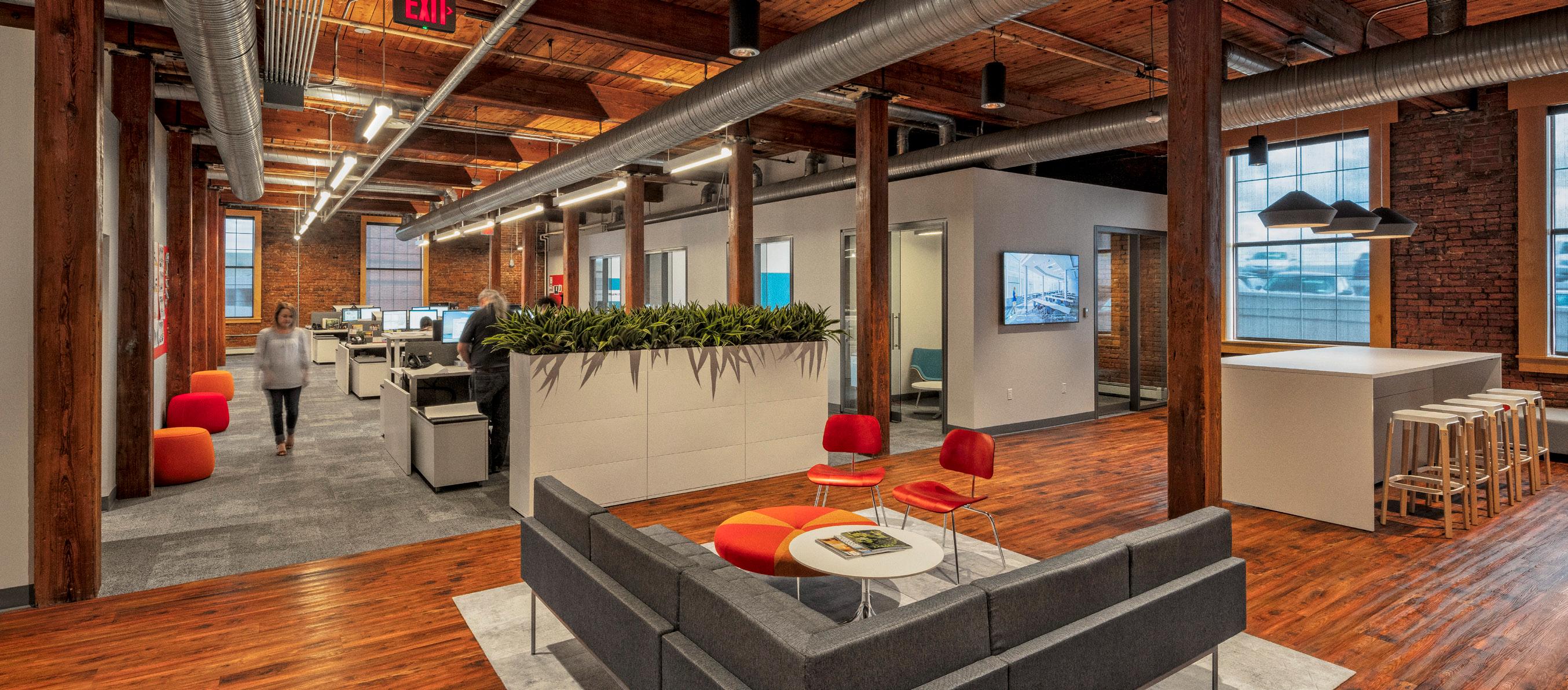 The original facility lacked a modern, flexible work space to promote collaboration and innovative thinking. Glass walls and various meeting spaces promote openness and transparency, and a new café and break area supports employee health and wellness.