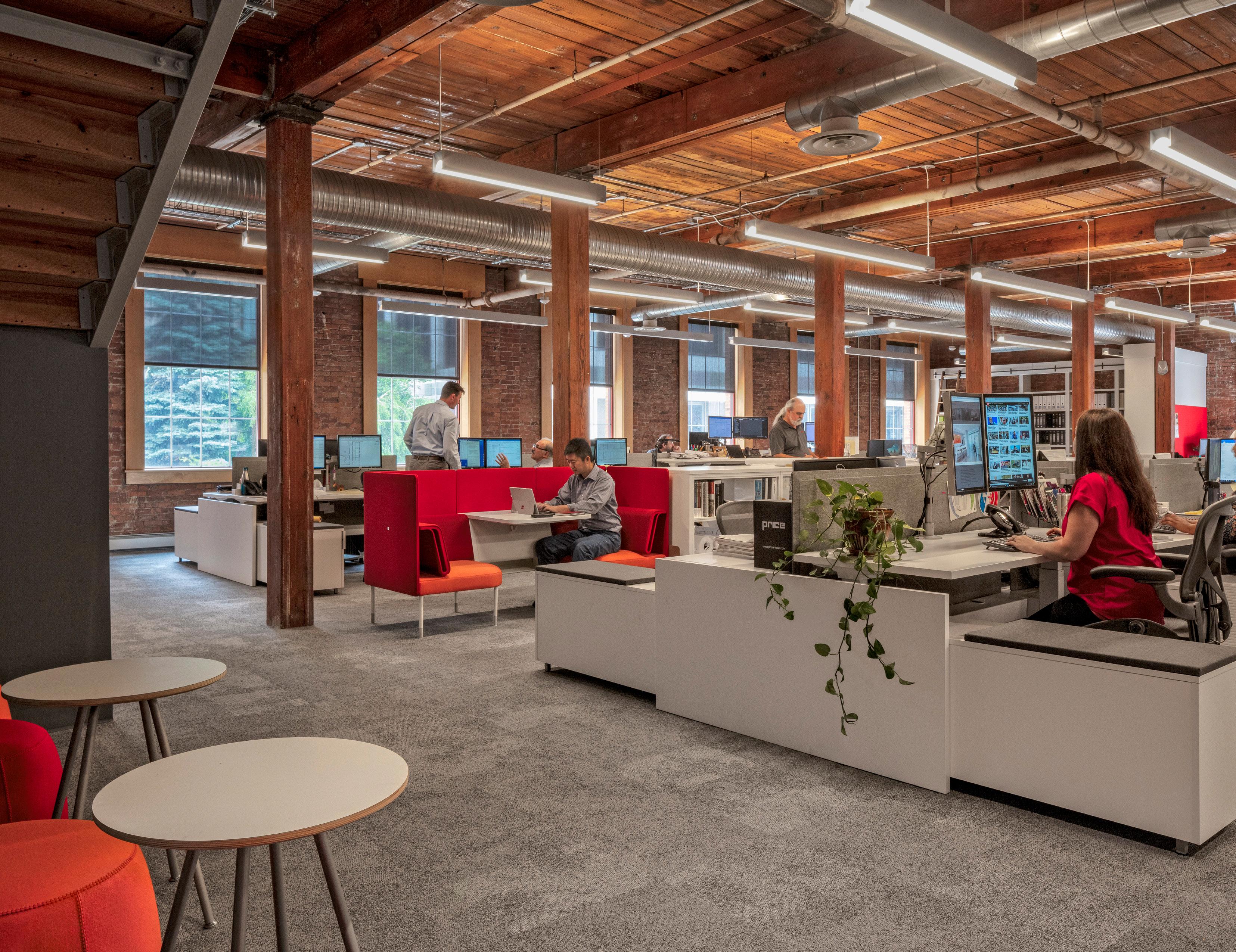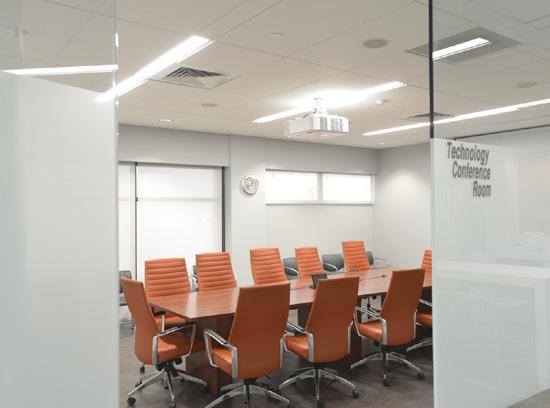 New workspaces and conference rooms are modern and vibrant, reflective of the company’s cutting-edge research and technology.