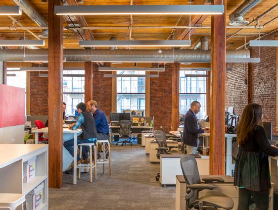Pioneer’s corporate staff occupies the top three floors of the four-story building, which features floor-to-ceiling windows and open floor plans.