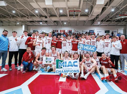 SJU went on to beat Augsburg and Bethel in the MIAC playoffs, earning the right to host the NCAA Division III West Regional in Collegeville. Unfortunately, the teamʼs luck ran out with a 71-47 opening round loss to Dubuque (Iowa).