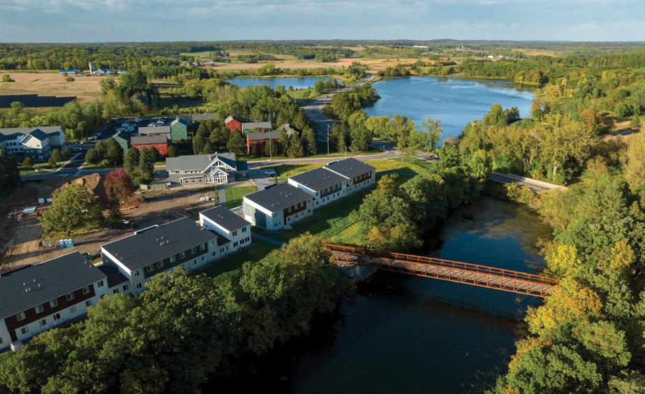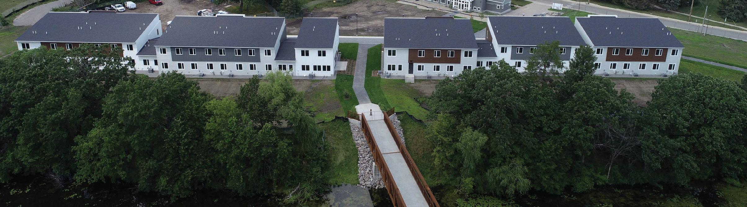 This pedestrian crossing was built for safety. As much as possible, we want to keep students from walking on County Road 159 – or from crossing the frozen lake. And, in connecting the upper and lower campus, it creates a grand entry to Flynntown, starting with the Seton Townhomes.