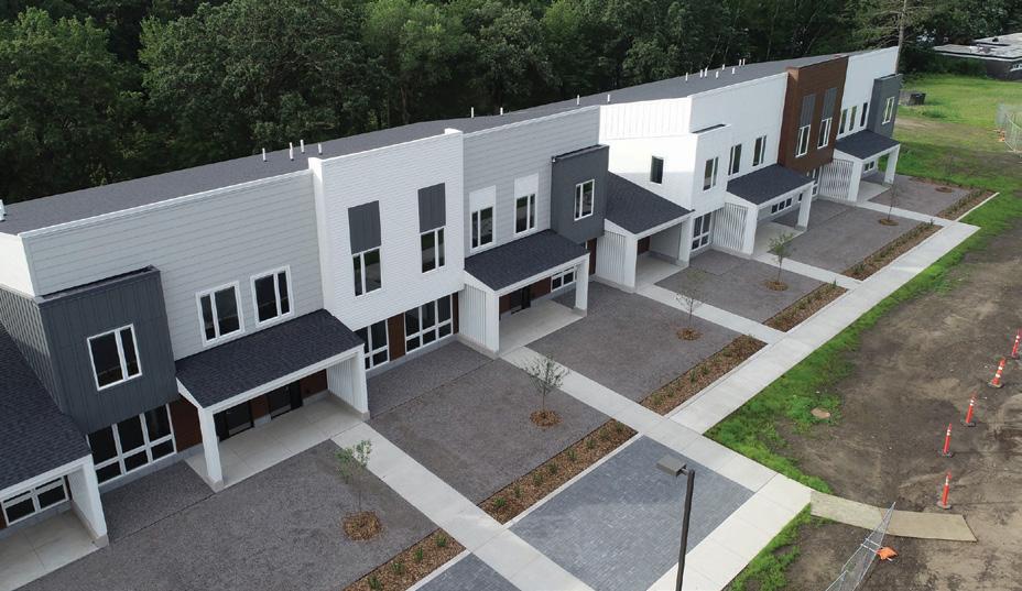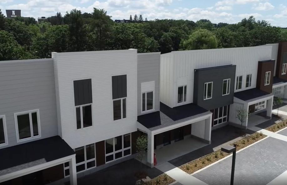 The first phase of townhomes consists of two buildings with 20 apartments for 94 students. Most of the apartments in the complex house six students, and include a living room, kitchen area and two bedrooms on the first floor and four bedrooms on the second. All are air conditioned, and the buildings include shared student space and laundry facilities.