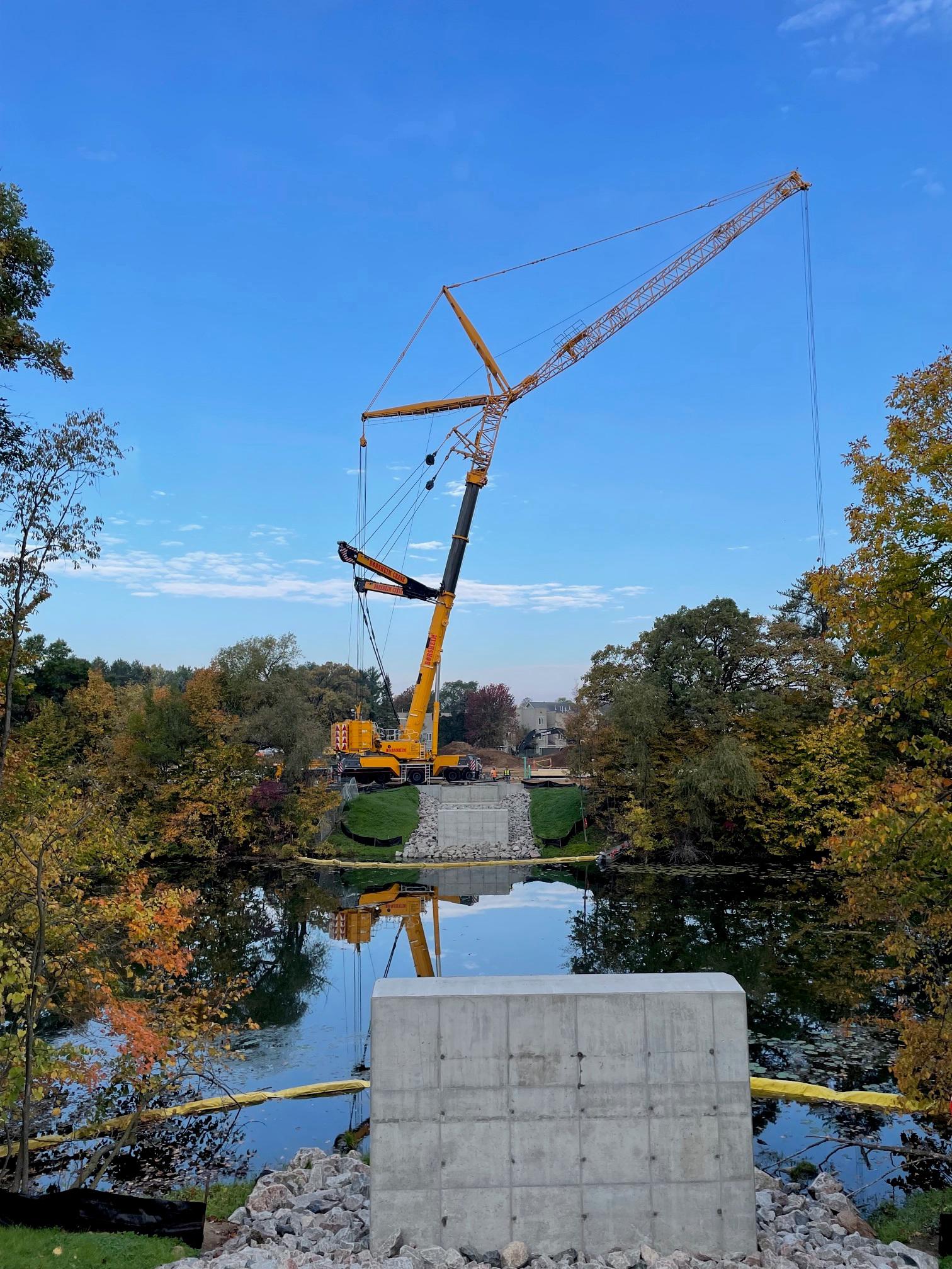 The bridge itself is impressive. At 270 feet long, it’s nearly the length of a football field. In fact, it took two of the largest cranes in the United States to pick it up from opposite sides of the lake and place it onto its foundation. But the significant thing about Nicol Bridge isn’t its magnitude, but it’s purpose.