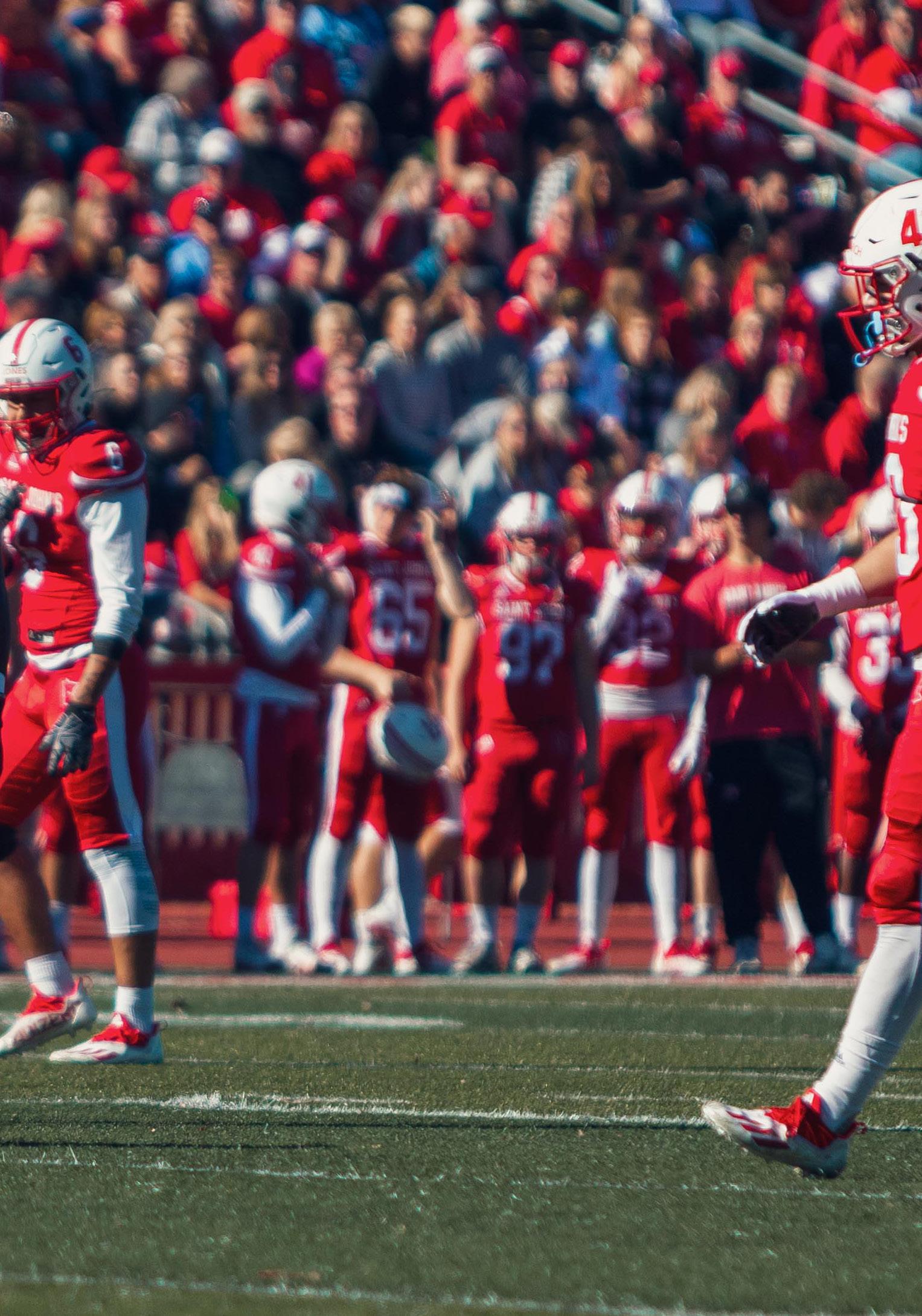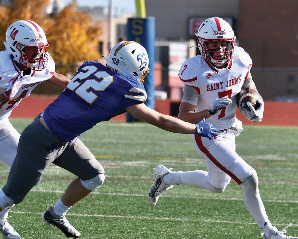 Caden, meanwhile, turned immediate heads when the 5-foot-10, 195-pound Andover High School grad tied for the team’s secondfastest 40-yard dash time when practice opened in August. That speed has already helped him become the Johnnies’ leader in kick-return yardage, and he has seen a little time in the backfield at running back as well.