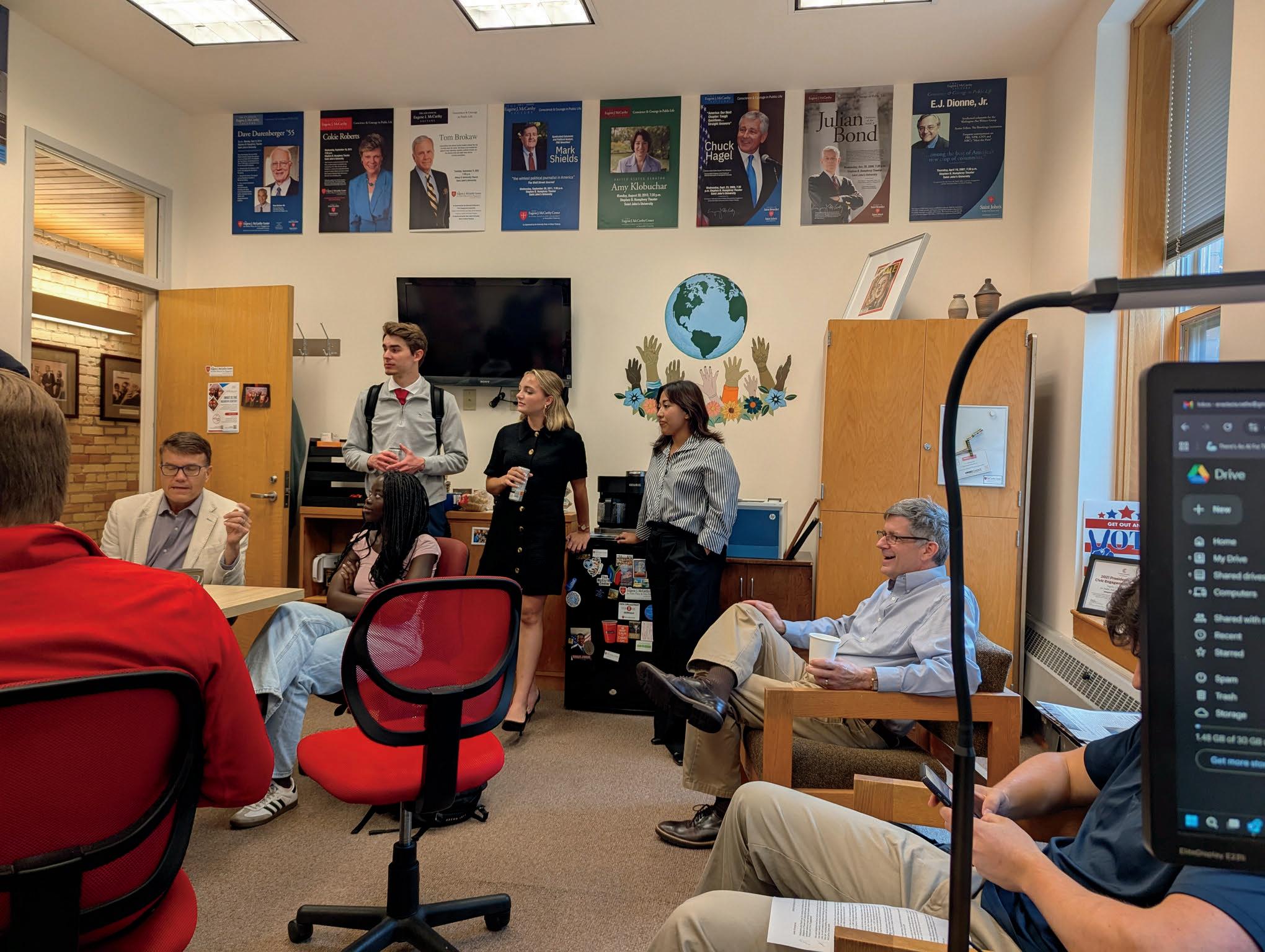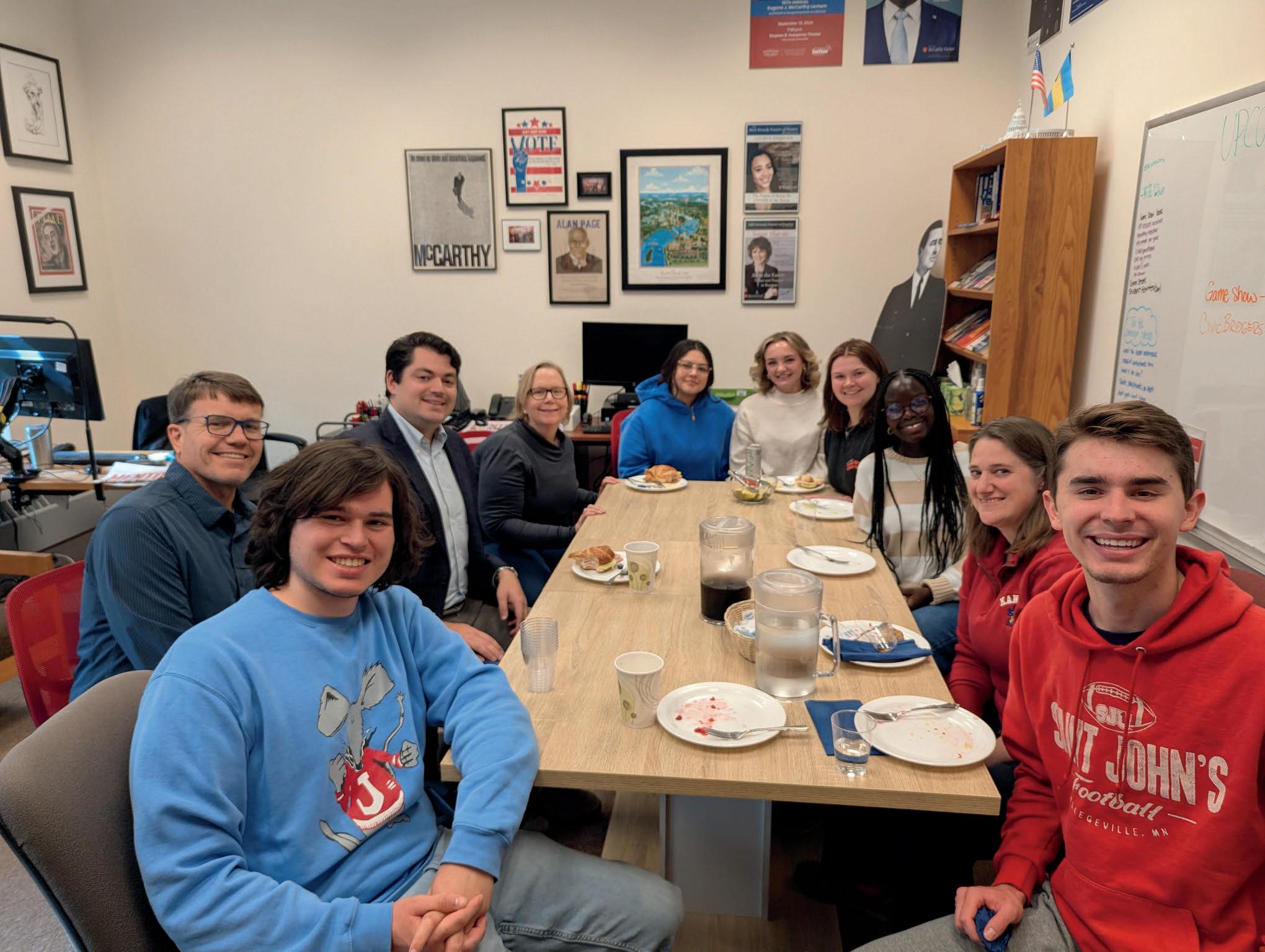 Across all this work—formal, informal, large, small—one constant remained: students are ready to learn, prepared to question, ready to serve, and ready to imagine themselves as contributors to public life Their presence gives me enduring hope for our institutions and our democracy. Equally important is the work of so many folks who help make the McCarthy Center, CSB, and SJU thrive Special thanks to Anastasia Nathe for her exceptional leadership and assistance in the McCarthy Center Thank you to all of our students, staff, faculty, alums, supporters, and friends for sustaining the McCarthy Center’s mission and nurturing the next generation of thoughtful, civically engaged leaders
