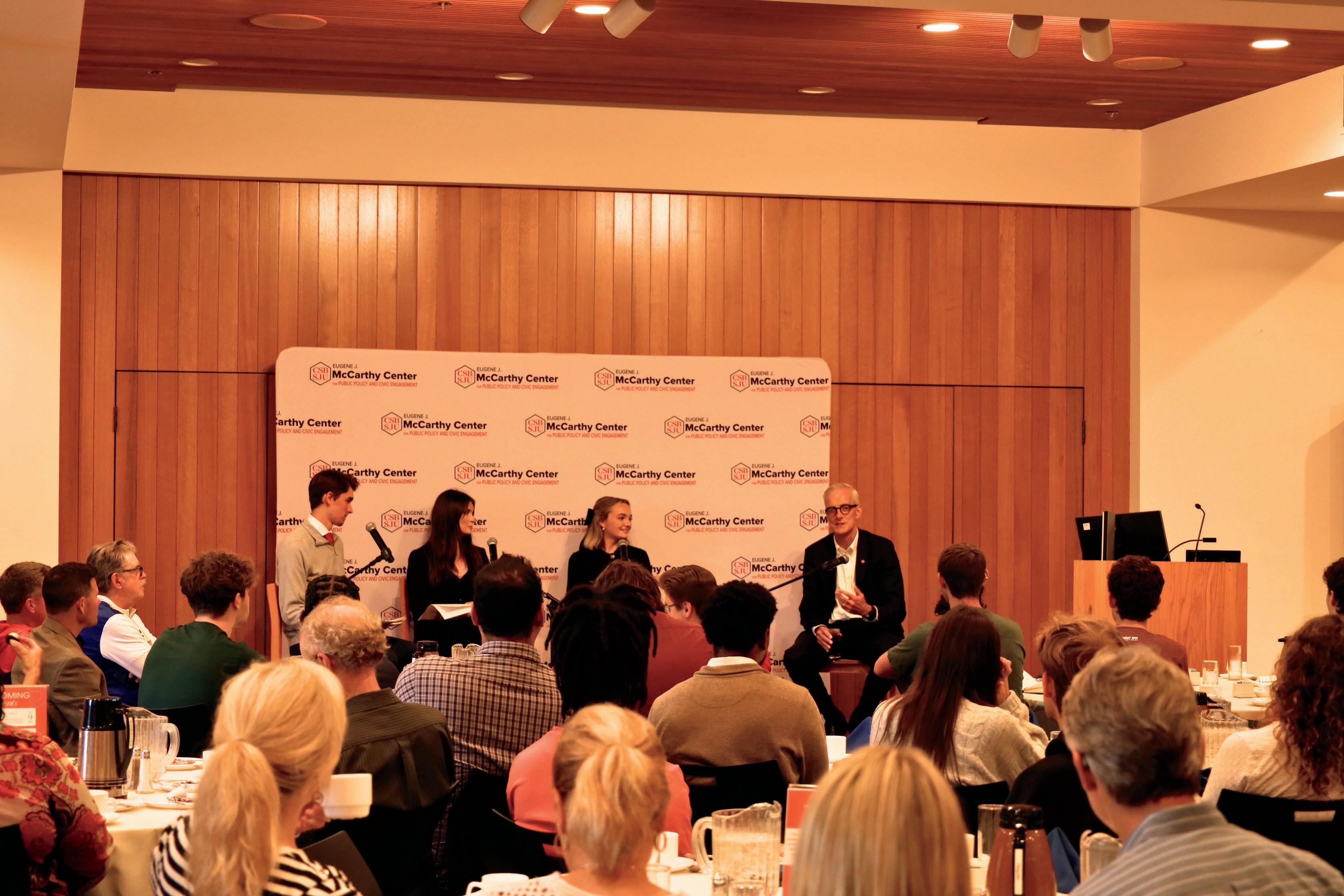 The McCarthy Center is excited to continue building its relationship with the Economic Club of Minnesota by encouraging students to attend events like this, take part in networking opportunities, and learn from guest speakers These experiences help bring global conversations closer to campus, spark curiosity about international economic issues, and give students a chance to connect classroom learning with real-world challenges By participating in these events, students gain valuable insights, develop professional connections, and explore how careers in business, diplomacy, and public policy intersect with global economic trends