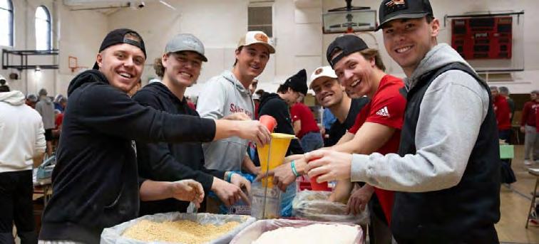 This year’s event - held as always on a Sunday in Lent on the SJU campus in Guild Hall – was the centerpiece of the SJU athletic department’s eighthannual food packing service project.