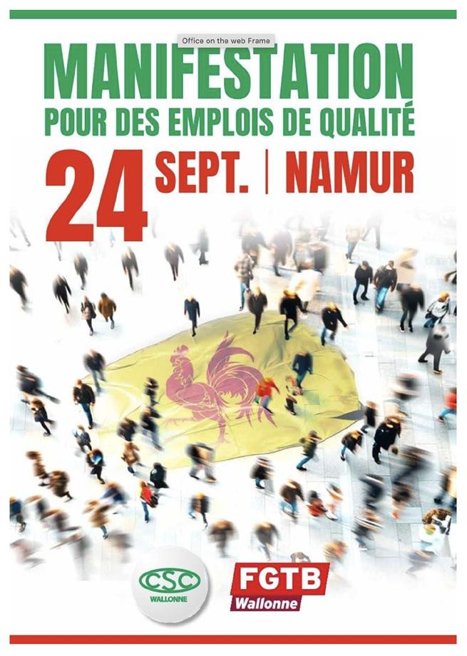 C’est pourquoi nous avons décidé de faire entendre notre voix à l’occasion d’une Manifestation pour des emplois de qualité en front commun syndical, ce 24 septembre à Namur. Cette mobilisation sera un moment fort pour rappeler que les travailleurs et travailleuses de Wallonie méritent le respect et ne peuvent pas être les variables d’ajustement des politiques d’austérité. Rendez-vous le mercredi 24 septembre à 10h00 à la gare de Namur pour la Manifestation wallonne pour des emplois de qualité.