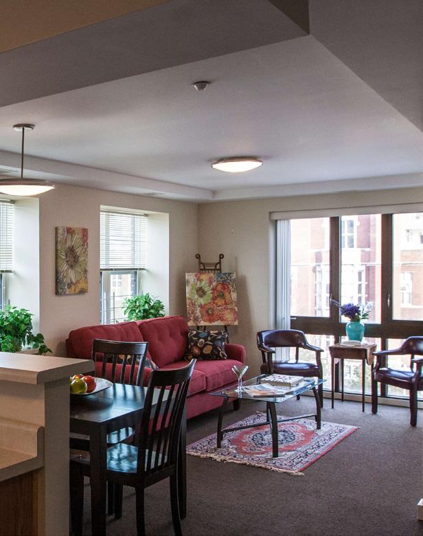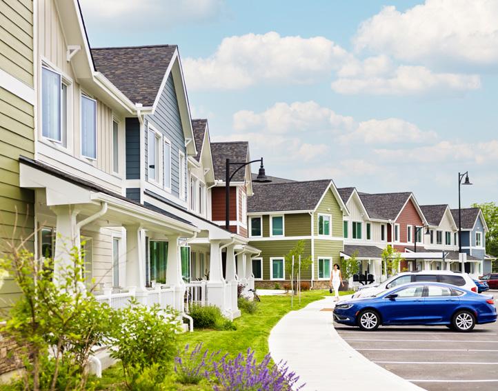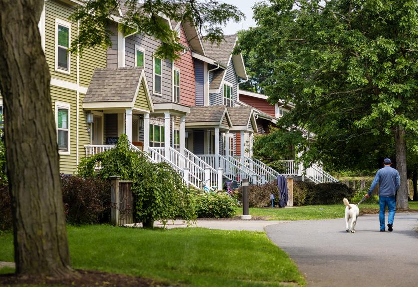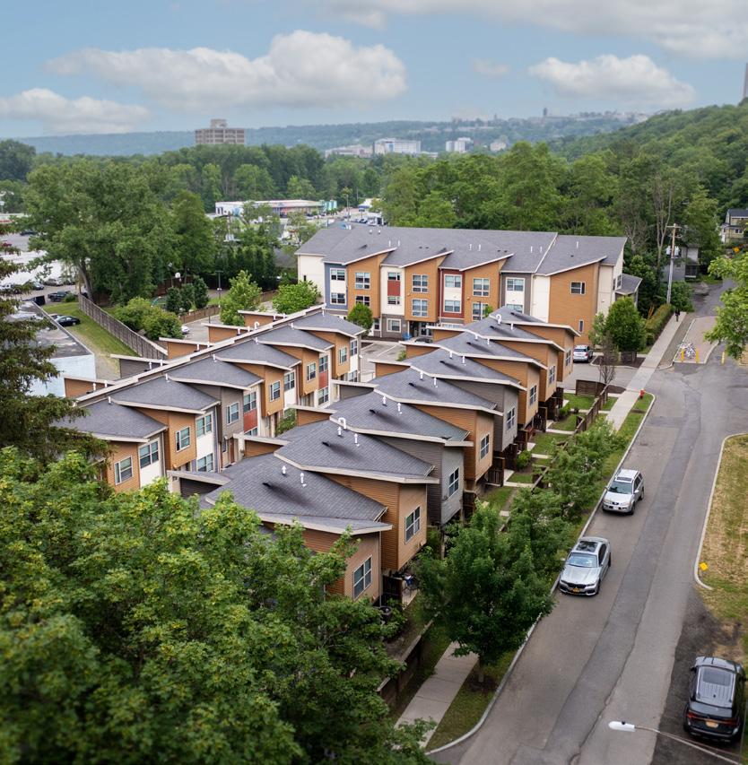 210 Hancock Apartments in Ithaca, NY is a landmark example of sustainable, mixed-income, mixed-use redevelopment. Transforming a full city block, the project includes 59 affordable and market-rate apartments, 12 townhomes for rent and sale, and 6,400 sf of community-serving commercial space—home to an Early Head Start program and hands-on STEM education through the Free Science Workshop. Sustainability is embedded throughout the design, from rooftop solar panels that offset common-area energy use to electric vehicle charging, energy-efficient systems, and green infrastructure. The project achieved LEED Gold, ENERGY STAR, and Enterprise Green Communities certifications, supporting long-term performance, resident health, and environmental responsibility. A model of publicprivate collaboration, the $20 million development was funded through a layered mix of Low-Income Housing Tax Credits, state housing incentives, local government support, utility grants, and both construction and permanent financing. 210 Hancock exemplifies how smart design, strategic funding, and a commitment to sustainability can deliver vibrant, inclusive, and resilient communities.