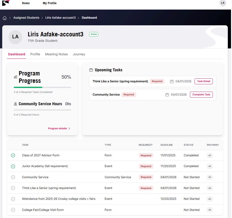 Role: As a Crosby Scholars Advisor, you are the lead member of a team helping your Scholar to navigate the college admission and financial aid processes.