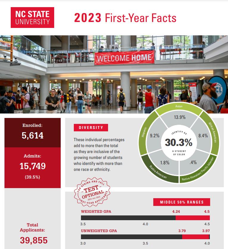 We discussed this more indepth at Think Like a Senior but let’s take NC State University as an example... Acceptance Rate