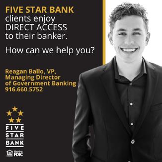 Five Star Bank is committed to serving special districts with customized banking solutions that will meet each client’s unique needs as we recognize no two districts are the same. How can we help you? Contact Reagan Ballo at rballo@fivestarbank.com or at 916-660-5752.