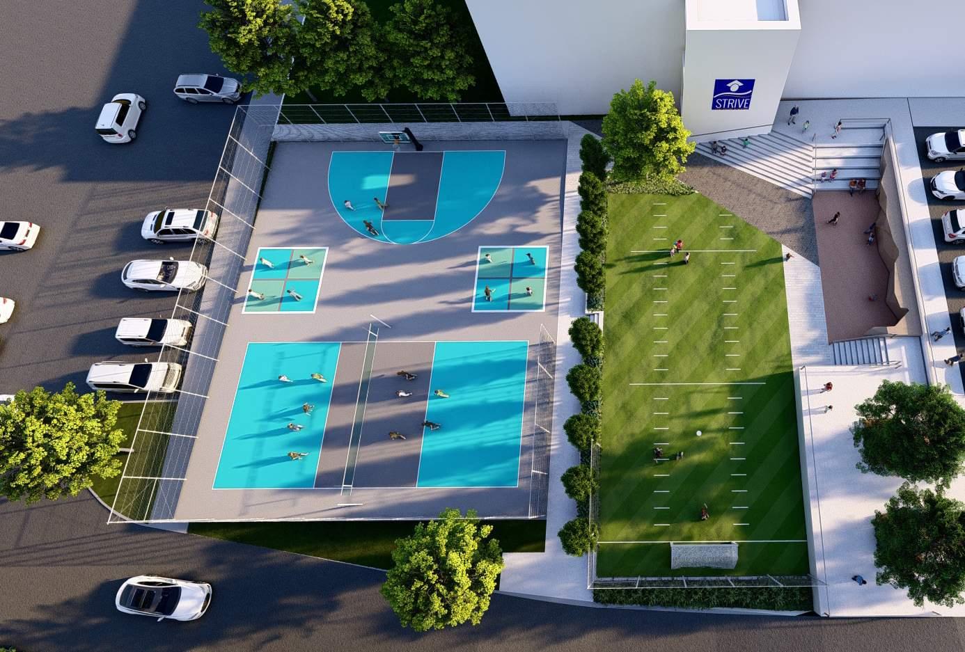 Strive Collegiate Academy engaged CSDG to create a vision for the students’ outdoor activity area by converting an existing parking lot into a multi-purpose athletic area. The design consisted of a multi-use court surface for sports and activities such as basketball, volleyball, and four-square, a soft-surface field for soccer, football and an agility and confidence building area with a utilized an existing retaining wall on the site. School programming elements included an improved pick-up and drop-off as added stairways and terraces for outdoor classroom and school gathering opportunities.
